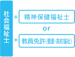 社会福祉士国家試験受験資格と精神保健福祉士国家試験受験資格、養護教諭一種免許と社会福祉士国家試験受験資格、社会福祉士国家試験受験資格などです。