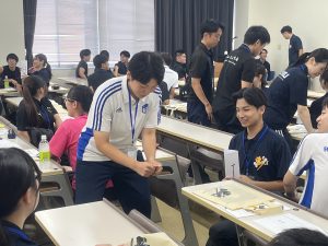 令和7年8月27日(水)に本学で「第9回九州学生トレーナー交流会」が開催されました。この交流会は、九州の大学・専門学校で学ぶアスレティックトレーナー、健康運動指導士などを目指す学生が互いに交流を深め、九州におけるトレーナーの現状について学ぶことを目的としているものです。今回は担当校として、本学からはリハビリテーション学科と鍼灸スポーツ学科の学生34名が参加し、そのうち11名が実行委員として企画・運営を行いました。