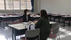 連絡会終了後には、希望者を対象に教員との個別面談も実施しました。就職や学修、学生生活に関する多様なご相談に対応することで、学生および保護者の皆さまの不安解消の一助となったのではないかと考えております。