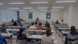 各学科の会場では、教員による就職や学修に関する情報提供に加え、卒業生による講話も行われました。
