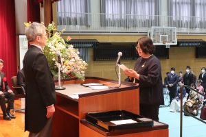 式典では、学長から、学部、大学院、専攻科の代表者に学位記及び修了証書が授与されました。