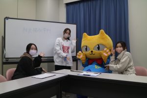 九州看護福祉大学 イベント 玉名市のマスコットキャラクター「タマにゃん」1日大学生体験! 玉名市のマスコットキャラクター「タマにゃん」1日大学生体験! 2022年12月16日 12月7日、玉名市のマスコットキャラクターの「タマにゃん」が1日大学生として来学しました。 5学科をそれぞれの学生の皆さんと一緒に学習されていました。 熊本県玉名市に所在地を置く大学として、タマにゃんをお迎えでき大変楽しい1日となりました。